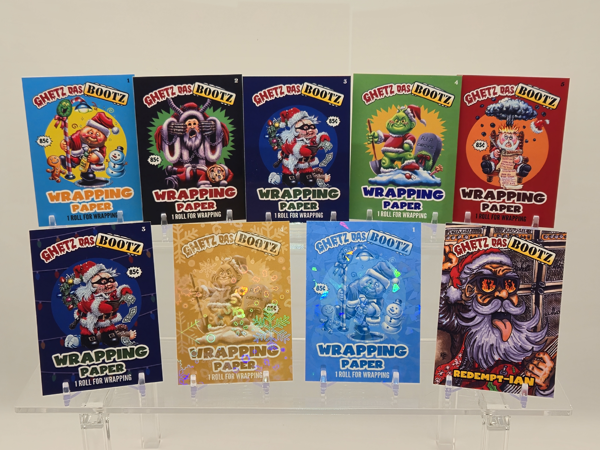 As we close out 2024, this year has been a HUGE year for GhetzDasBootz. With three successful series and tons of cards in the hands of all you wonderful fans, I decided to do one more series!! I proudly present to you, Series 4 Oh-HO-HO Wrapping Paper. A funny parody of the super popular Wrapper cards, Series 4 Oh-HO-HO Wrapping Paper adds that GhetzDasBootz spin to create a unique holiday set. Featuring a Santa-ish base set, 3 unique card variants, Superfractors and a mind-blowing 60 Redempt-IAN cards!! Yes, you heard that right...60!! (To see all the cards available in the set and check out all the Redempt-IAN prizes, scroll down to the bottow of this page!!
